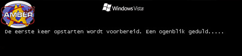 Tijdens het opstarten komt de melding met het Vista logo erboven dat er wordt voorbereid op de eerste keer opstarten.