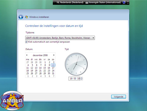 Bij de tijd wezen gaat het volgende scherm dan over, controleer of de klok op tijd staat en de datum klopt. Klopt dit niet pas het dan aan naar de juiste instellingen, anders klik je op volgende om door te gaan naar het laatste scherm.